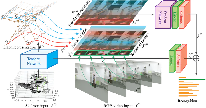 Indoor action recognition plays an important role in modern society, such as intelligent healthcare in large mobile cabin hospitals. With the wide usage of depth sensors like Kinect, multimodal information including skeleton and RGB modalities brings a promising way to improve the performance. However, existing methods are either focusing on a single data modality or failed to take the advantage of multiple data modalities. In this paper, we propose a Teacher-Student Multimodal Fusion (TSMF) model1 that fuses the skeleton and RGB modalities at the model level for indoor action recognition. In our TSMF, we utilize a teacher network to transfer the structural knowledge of the skeleton modality to a student network for the RGB modality. With extensive experiments on two benchmarking datasets: NTU RGB+D and PKU-MMD, results show that the proposed TSMF consistently performs better than state-of-the-art single modal and multimodal methods. It also indicates that our TSMF could not only improve the accuracy of the student network but also significantly improve the ensemble accuracy.